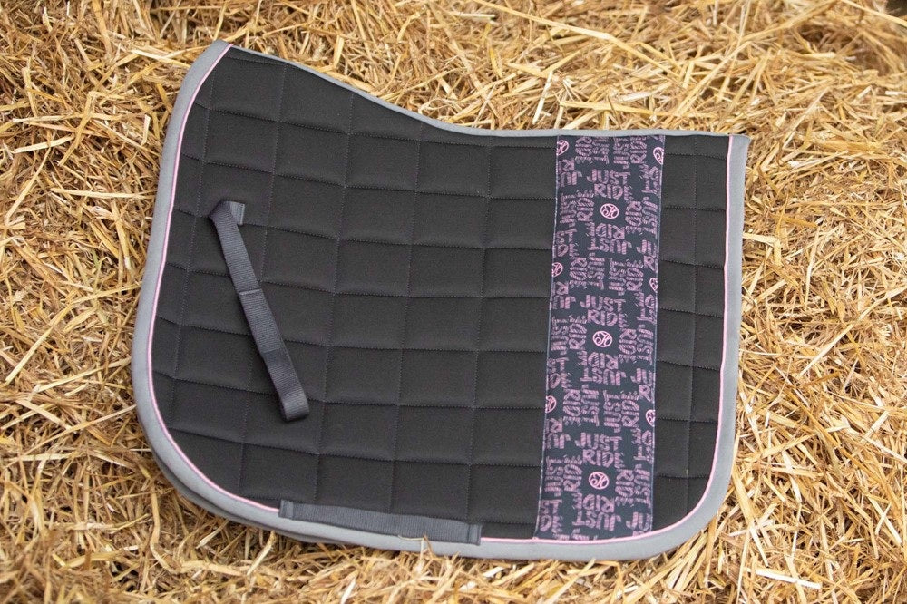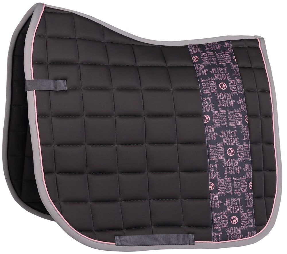 Zadeldek met een verticale baan met allover print van het Just Ride Urban logo, verder voorzien van een contrast bies en piping.
